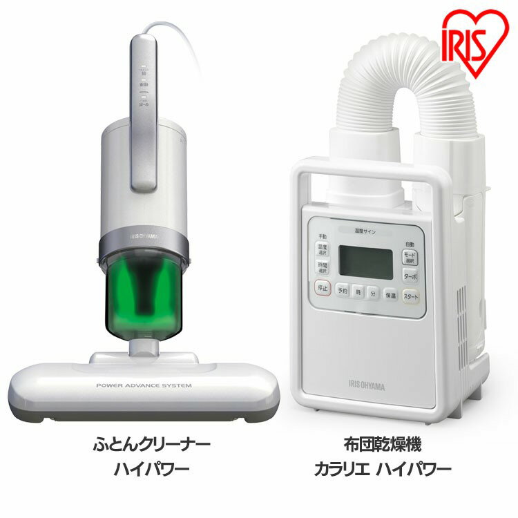 従来比約2.3倍!【布団乾燥機カラリエ ハイパワー KF-H1】●商品サイズ(cm)幅約16.8×奥行約15×高さ約38●電源AC100V 50/60Hz●質量約1.8kg●消費電力900W●ホースの長さ約75cm●電源コード約1.9m●タイマー9段階(5・15・30・45・60・75・90・120・180分)●安全装置温度センサー/サーモスタット/温度ヒューズ●付属品くつ乾燥アタッチメント【ふとんクリーナー ハイパワー IC-FAC4】●商品サイズ(cm)使用時:幅約30×奥行約50.1×高さ約21.8収納時:幅約30×奥行約16.7×高さ約42●電源AC100V 50/60Hz●消費電力600W●集じん容量0.2L●質量約2.2kg(電源コード含む)●たたき回数毎分約14000回●電源コード長さ4m●セット内容クリーナー本体、使い捨てフィルター×25枚(1枚は本体にセット済み)(検索用:布団 ふとん 掃除 掃除機 クリーナー 乾燥機 ハイパワー 吸引力 )★